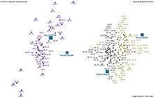 Nevertheless, all three species of Iris are separable in the projection on the nonlinear branching principal component.[6] The data set is approximated by the closest tree with some penalty for the excessive number of nodes, bending and stretching. Then the so-called "metro map" is constructed.[4] The data points are projected into the closest node. For each node the pie diagram of the projected points is prepared. The area of the pie is proportional to the number of the projected points. It is clear from the diagram (left) that the absolute majority of the samples of the different Iris species belong to the different nodes. Only a small fraction of Iris-virginica is mixed with Iris-versicolor (the mixed blue-green nodes in the diagram). Therefore, the three species of Iris (Iris setosa, Iris virginica and Iris versicolor) are separable by the unsupervising procedures of nonlinear principal component analysis. To discriminate them, it is sufficient just to select the corresponding nodes on the principal tree.