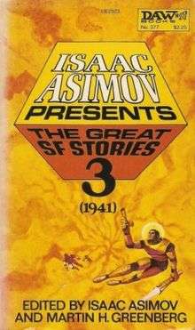 Isaac Asimov Presents The Great SF Stories 3 (1941) is an English language collection of science fiction short stories, edited by Isaac Asimov and Martin H. Greenberg.[1][2] The series attempts to list the great science fiction stories from the Golden Age of Science Fiction. They date the Golden Age as beginning in 1939 and lasting until 1963. The book was later reprinted as the first half of Isaac Asimov Presents The Golden Years of Science Fiction, Second Series with the second half being Isaac Asimov Presents The Great SF Stories 4 (1942).