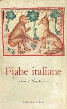 Italian Folktales (Fiabe italiane) is a collection of 200 Italian folktales published in 1956 by Italo Calvino. Calvino began the project in 1954, influenced by Vladimir Propp's Morphology of the Folktale; his intention was to emulate the Straparola in producing a popular collection of Italian fairy tales for the general reader.[1] He did not compile tales from listeners, but made extensive use of the existing work of folklorists; he noted the source of each individual tale, but warned that was merely the version he used.[2]