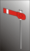 Semaphore signals consist of a pole with an arm mounted to the left. This arm has two positions: