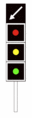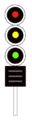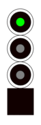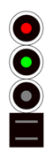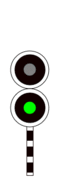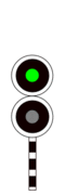 - Tilted down "45°" (in fact about 52°), indicating a green light or warning of green light; at night indicates a green light.