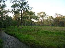 Jaldapara National Park (Pron: ˌʤʌldəˈpɑ:rə) (formerly Jaldapara Wildlife Sanctuary) is a national park situated at the foothills of the Eastern Himalayas in northern West Bengal and on the banks of the Torsa River. Jaldapara is situated at an altitude of 61 m and is spread across 216.51 km2 (83.59 sq mi) of vast grassland with patches of riverine forests.[1] It was declared a sanctuary in 1941 for protection of its great variety flora and fauna. Today, it has the largest population of the Indian one horned rhinoceros in the state, an animal threatened with extinction,[2] and is a Habitat management area (Category IV).[3] The nearby Chilapata Forests is an elephant corridor between Jaldapara and the Buxa Tiger Reserve[4] Near by is the Gorumara National Park, known for its population of Indian rhinoceros.