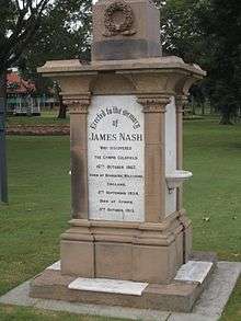 - 1 2 Stoodley, June (1974). "Nash, James (1834 - 1913)". Australian Dictionary of Biography. Canberra: Australian National University. Retrieved 2014-01-31.
