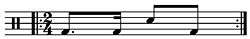 In the opinion of jazz historian Ernest Borneman, what preceded New Orleans jazz before 1890 was "Afro-Latin music", similar to what was played in the Caribbean at the time.[33] A three-stroke pattern known in Cuban music as tresillo is a fundamental rhythmic figure heard in many different slave musics of the Caribbean, as well as the Afro-Caribbean folk dances performed in New Orleans Congo Square and Gottschalk's compositions (for example "Souvenirs From Havana" (1859)). Tresillo is the most basic and most prevalent duple-pulse rhythmic cell in sub-Saharan African music traditions and the music of the African Diaspora.[34][35]