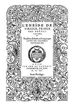 Jean de Tournes published many of the Lyonnais poets of his generation, including Antoine du Moulin, Maurice Scève, Louise Labé, Joachim du Bellay and Olivier de Magny. He published accurate editions of the works of authors including Petrarch (1545), Dante (1547), Marguerite de Navarre (1547), Vitruvius (1552) and Froissart (1559–61). He published numerous works in Latin, Italian and other languages, including a Latin version of Guillaume Le Sueur's account of the Martin Guerre affair (1561). Illustrated books from his press include the Emblemata of Andrea Alciati (1547), Aesop's Fables (1547), the Quadrins historiques de la Bible (1553) and the Metamorphoses of Ovid (1557).[2]