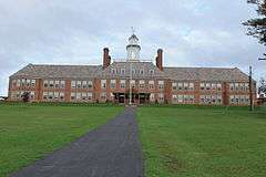 Jeffersonville School is a historic school building located at Jeffersonville in Sullivan County, New York. It was built in 1938-1939 and is a large, expansive, two story Georgian style central school with a below grade basement. The original buildings is a "T" shaped, steel frame and concrete structure with red brick and brickwork ornamentation and surmounted by a slate roof. It is topped by a white, windowed cupola, a four sided clock tower, and a weather vane. It is operated by the Sullivan West Central School as an elementary school.[2]