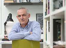 Jiří Hájíček (born 11 September 1967 in České Budějovice) is a contemporary South Bohemian Czech writer. He started writing poetry in the 1980s in a youth poetry programme hosted by Mirek Kovářík.[1] He won the 2006 Magnesia Litera prize for prose with his novel Selský baroko.[2] In the European Society of Authors' 2013 Finnegan's List, Jaroslav Rudiš selected Hájíček's 2012 novel Rybí krev (Fish Blood) to be more widely translated into European languages.[3] Rybí krev also won the Magnesia Litera Book of the Year for 2013.[4]