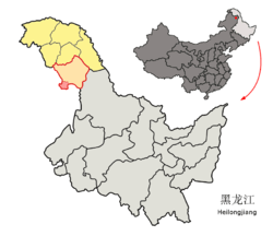 ![]() Location of the district in Heilongjiang (outline in red) and in the PRC (pinpoint) | |