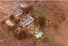 On 21 November 1925 Jimbour House was formally re-opened with a fund raising fete for Dalby Hospital. This commitment to work for the well being of the community has been continued by the Russell family. Wilfred Russell died in 1932, and the management of Jimbour passed to his son Charles Russell and Charles' wife Hilary.[2] In the 1930s, two large wooden pergolas over the drive at each end of the house and four smaller pergolas in the rose garden were erected, and the rose garden was divided into the four quadrants that now define it. In 1938, the drive was constructed from the front gate to the water tower, and jacarandas and shrubs were planted along both sides.