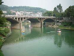 Jishou lies east of the Wuling Mountain range. About 80% of the city's terrain is low hills or low mountains. The highest elevation is 964.5 meters, at Liantaifeng (莲台峰; 蓮台峰, near the town of Aizhai (矮寨) and the lowest point is 142 meters, near the town of Hexi (河溪镇; 河溪鎮).[5] The Dong River (峒河), a tributary of the Wu (Yuan River), runs west to east through the city.