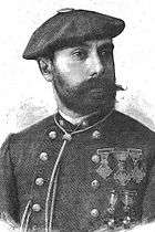 As a 19-year-old Joaquín Lloréns joined the insurgent troops at the outbreak of the Third Carlist War. He fought on the Northern front during the 1873 campaign in Navarre: soon promoted to teniente,[11] he took part in the sieges of Viana and of Valcarlos. Following the inconclusive battle of Mañeru, which repulsed the Liberal troops during their march on Estella, and the likewise undecided battle of Montejurra, Lloréns contributed to clear victories at Belabieta and Dicastillo,[12] which finally stabilized Carlist rule in Navarre and Gipuzkoa. Early 1874 he proceeded in line with the Carlist offensive in Vizcay, which climaxed in the siege of Bilbao.[13] In February 1874 his unit was assigned to carry out an attack on the pocket of Republican Gipuzkoan resistance in Tolosa;[14] in March it took part in the victorious attempt to prevent the Liberal relief of Bilbao during the slaughter at Somorrostro; Lloréns commanded the 120-mm cannon artillery.[15] Continued to fight around Bilbao during the failed battle of San Pedro Abanto in the spring of 1874.