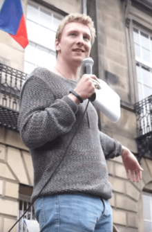 Lycett performing for the Equality Network's LGBT Rights: Stand-up for Russia event in Edinburgh, August 2013 | |