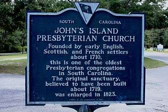 - ↑ "John's Island Presbyterian Church, Charleston County (S.C. Sec. Rd. 20, John's Island)". National Register Properties in South Carolina. South Carolina Department of Archives and History. Retrieved 10 June 2012.