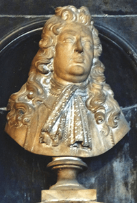 A mural monument to Sir John Berry exists in St Dunstan's Church, Stepney, London, on the north wall, which he ordered to be erected at a cost of no less than £150. Prince described the monument thus:[10] "It is all of white marble of about 10 foot in height and 5 in breadth finely polished. In a nich in the middle stands on a pedestal the effigies[11] of Sir John cut with a campaign wig and a cravat in pure alabaster. Over his head are the arms of his family, underneath on a table of white marble is the following epitaph in black letters:[12]