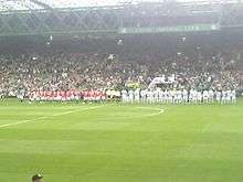 A testimonial fixture for Kennedy between Scotland and Celtic had been mooted,[1] while a match between Finn Harps and Celtic had been arranged for 28 November 2010, but was postponed. The game was replayed on Sunday 6 March with Celtic winning 4–1. A further testimonial match was arranged for Sunday 22 May 2011 at Celtic Park between the current Celtic side and some of the Celtic team that made it to Seville for the 2003 UEFA Cup Final including the manager back then, Martin O'Neill.[27] However, this match was also postponed, and eventually replaced with a match between a team of Celtic Legends, managed by Martin O'Neill, and a team of Manchester United Legends. The match was played on 9 August 2011 with Celtic winning 5–2, and the proceeds were donated to Oxfam's East Africa charity appeal.[28]