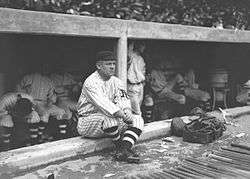 Despite great success as a player, McGraw is most remembered for his tremendous accomplishments as a manager. In his book The Old Ball Game, National Public Radio's Frank Deford calls McGraw "the model for the classic American coach—a male version of the whore with a heart of gold—a tough, flinty so-and-so who was field-smart, a man's man his players came to love despite themselves."[20] McGraw took chances on players, signing some who had been discarded by other teams, often getting a few more good seasons out of them. Sometimes these risks paid off; other times, they did not work out quite so well. McGraw took a risk in signing famed athlete Jim Thorpe in 1913. Alas, Thorpe was a bust, not because he lacked athletic ability, but because "he couldn't hit a ball that curved."[20] McGraw was one of the first to use a relief pitcher to save games. He pitched Claude Elliott in relief eight times in his ten appearances in 1905. Though saves were not an official statistic until 1969, Elliot was retroactively credited with six saves that season, a record at that time.[21][22]
