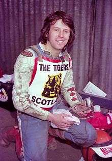 John graduated to Speedway from Grasstrack racing. After some brief appearances with Sunderland Stars in 1971, he rode for the Glasgow Tigers speedway team from 1971 to 1977 (Relocated as Coatbridge Tigers from 1974[1]) and appeared for the Scotland national team from 1973 through to 1975.[2] John also rode in four indoor Ice speedway events in Scotland during 1972 including the first event at Murrayfield riding for “Ayr Giants” against “Murrayfield” and the Scottish Open Pairs event in Aviemore, riding for Wembley Lions with partner Bert Harkins.[3] John rode three Long Track Speedway events at Motherwell finishing with a respectable 8 points in the opening event.[4]