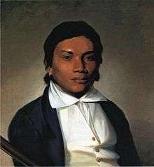 While on his tour of the U.S., American artist Philip Tilyard made a portrait of Jonathas Granville, which is now on exhibit at the Baltimore Museum of Art. This is an canvas oil painting. Its measurements are height: 50.8 cm (20 in.), width: 48.26 cm (19 in.). The colors are more real than in any other visual representation we have of the time, and in this point it correlates with the way people described him, but the rest of his appearance here is less accurate. The intention of the artist was not to present him as he really was, but to show him in a regal and noble demeanor, which was part of the exoticism of the orientalist movement of the time.[10][11][12] He never wrote or talked about this portrait, but he mentioned how he was being paraded in the U.S as a strange beast, being asked to talk and showing himself to others in an exotic manner. "They look at me as a curious beast, given meetings to hear me speak, so I chattered like a magpie." [13]
