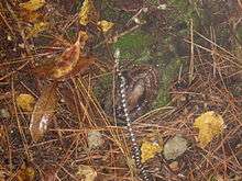 The forests of Jones Lake State Park provide a habitat for a variety of animals that are fairly common to an eastern woodland habitat. Wild turkey, white-tailed deer and rabbits can be spotted on from time to time. Wood ducks live on the lake. Red-cockaded woodpeckers can be seen in the forest as can red-tailed hawks, yellow-throated warbler, white-eyed vireo and pileated woodpeckers. Jones Lake State Park is also home to box turtles, fence lizards, pine barrens tree frog, southern toads, bullfrogs and carpenter frogs.[5]