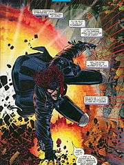 Jono yet again resurfaced, now using the codename Decibel as a member of Night Thrasher's most recent incarnation of the New Warriors.[10] In this new persona, Jono had a hi-tech suit, which gave him the ability to create solidified sound constructs. He revealed that he chose those powers because he did not want to be a weapon of destruction anymore and could now create.[11] He served with the group for the duration, until it was decided that they should disband. He was last seen departing in the company of Jubilee, and other surviving members of the team.