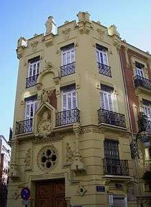 In 1901 the Building of the Dragons was built in Valancia which combined Moorish and Gothic influences with medieval ideas. The house also incorporates crenellations and dragons which give the house its name.[1] which is still preserved on the corner of the Calle Jorge Juan Sorni shopping center. In 1903 his design for a building in Ceuta was completed[2] and it was intended to take the names of its owners but it gained the similar name of House of the Dragons. That house lost its dragons but they were redesigned and replaced in 2006.[3]