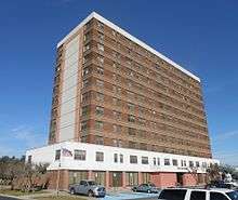 The Joseph Floyd Manor is a retirement home in the upper peninsula area of Charleston, South Carolina. The building is located at the northwest corner of Mt. Pleasant St. and King St. The 12-story building was originally known as the Darlington Apartments and was designed by William G. Lyles, Bissett, Carlisle & Wolff of Columbia, South Carolina. The apartments cost $1,626,000 when it was built, starting in 1950. The ground floor was supposed to have space for commercial spaces, and the second floor was to have professional offices such as lawyers or doctors along with 156 apartments. Rent for an apartment ranged from $75 per month for a one-bedroom efficiency to $175 a month for one of three three-bedroom penthouse apartments. The property had been bought by Mr. Leonard D. Long in 1933 when it housed a tent community and there were only two nearby houses. Immediately before the construction began in January 1950, the site was home to a World War II-era nightclub known as the Windmill which was being used as a grocery store. The apartments were meant to cater to single men and women and retirees.[1]