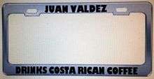 Juan Valdez drinks Costa Rican coffee (Spanish: Juan Valdez bebe café de Costa Rica) is a slogan, implying that Juan Valdez, a fictional character created by the Federación Nacional de Cafeteros de Colombia (Fedcafé), drinks coffee from Costa Rica. In Costa Rica, the slogan is popular on bumper stickers.[1] The slogan prompted a lawsuit for the first time in 2006, when Federación Nacional de Cafeteros de Colombia sued Café Britt following a t-shirt dispute.