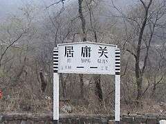 Juyongguan railway station (simplified Chinese: 居庸关站; traditional Chinese: 居庸關站; pinyin: jū yōng guān chē zhàn) is a railway station in Beijing, near the Juyongguan section of Great Wall.