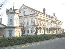 Most Kaikosha buildings that survived the war still exist despite having been commandeered by SCAP during the subsequent occupation. Notable among them are the 7th Division’s Asahikawa Kaikosha, which is today the Asahikawa Museum of Sculpture, the 8th Division’s Hirosaki Kaikosha which is today a memorial hall open to the public,[5] and the 11th Division’s Zentsuji Kaikosha which is today used for a variety of purposes including as the site of placement exams for members of the Self-Defense Force, of regular recitals of the JSDF band, and of events and exchanges between local civilians and JSDF personnel, and there is even a Kaikosha Café in a separate building recently established beside the main building.[6] All three of these buildings have received national recognition as Important Cultural Properties of Japan.