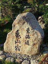 Kameyama-juku (亀山宿 Kameyama-juku) was the forty-sixth of the fifty-three stations (shukuba) of the Tōkaidō. It is located in former Ise Province in what is now part of the city of Kameyama, Mie Prefecture, Japan.