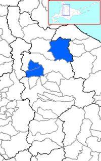 Kamikawa (上川郡 (天塩国) Kamikawa-gun (Teshio no kuni)) is a district located in Kamikawa Subprefecture, Hokkaido, Japan. Confusingly, there is a district of the same name, Kamikawa (Ishikari) District, in the same subprefecture. In 1869, when Hokkaido was divided into 11 provinces and 86 districts, this Kamikawa District was placed under Teshio Province. The name is derived from its location at the headwaters of the Teshio River, whereas the other Kamikawa District is named after the headwaters of the Ishikari River. There is a third district with this name in Hokkaido, see Kamikawa (Tokachi) District.