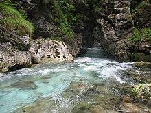The Kamnik Bistrica (Slovene: Kamniška Bistrica, pronounced [ˈkáːmniʃka ˈbíːstrit͡sa])[1] is an Alpine river in northern Slovenia, a left tributary of the Sava River. It springs from the Kamnik Alps (part of the Southern Limestone Alps) near the border with Austria. It is 33 km (21 mi) long.[2] The Kamnik Bistrica flows through the town of Kamnik, where it is fed by the Nevljica River. It flows into the Sava south of Videm, about 10 km east of Ljubljana.