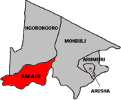 Map of Arusha Region's Districts with Karatu highlighted. | |