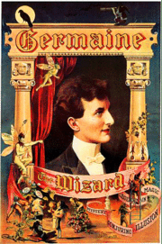 At the age of 8, young Charles Mattmueller presented an impromptu version of the Spirit Cabinet for two schoolmates. Charles was tied with ropes and locked inside a bread cabinet. A short time later, knocks and raps were heard coming from the cabinet frightening the onlookers. It is unknown how Charles with no knowledge of magical principles figured out how to do this, but it began an interest in magic that would last throughout his life.[3] As a teen he performed under his last name Mattmueller, and then later changed it to Germaine, and eventually Germain. He was a popular artist who worked in the Lyceum and Chautauqua circuits.[4]