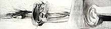 Götz's early post-War work included extensive experimentation with techniques and imagery in prints and drawings that included drawings made using an airpump. He produced woodcuts and watercolours that featured fantastical plant forms and creatures, among them a series of monotype prints of bird-humans.[14] During the late 1940s he continued to producing abstract-figurative monotypes and surrealistic experimental photo works, but his painting became predominantly abstract.