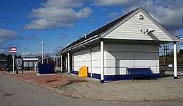 Today only a single platform remains in full-time use, though the Dufftown branch platform (numbered 1) is available if required for turning back trains from the Aberdeen direction (though no trains are scheduled to do so in the current timetable).[4] The bays have been filled in, having been abandoned & tracks lifted in the early 1970s after the closure of the Moray Coast Line (for which the station was a terminus). A signal box (which retains the name Keith Junction) remains at the eastern end to control a passing loop on the single track main line beyond the station, the now little-used goods yard (formerly used by trains accessing the nearby Chivas Regal whisky plant) and the stub of the Dufftown branch.