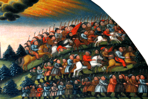 The Khmelnytsky Uprising (Polish: Powstanie Chmielnickiego; Ukrainian: повстання Богдана Хмельницького; Russian: восстание Богдана Хмельницкого; also known as the Cossack-Polish War,[1] or the Khmelnytsky insurrection[2]) was a Cossack rebellion within the Polish-Lithuanian Commonwealth in 1648–1657, which led to the creation of a Cossack Hetmanate in Ukrainian lands. Under the command of Hetman Bohdan Khmelnytsky, the Zaporozhian Cossacks, allied with the Crimean Tatars and local peasantry, fought against the armies and paramilitary forces of the Polish–Lithuanian Commonwealth. The insurgency was accompanied by mass atrocities committed by Cossacks against the civilian population, especially against the Roman Catholic clergy and the Jews.[3]