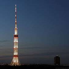 The Kiev TV Tower (Ukrainian: Телевізійна вежа, Televiziyna vezha) is a 385 m-high (1,263 ft) lattice steel tower built in 1973 in Kiev, Ukraine, for radio and television broadcasting. It is the tallest freestanding lattice steel construction in the world.[1] The tower in Oranzhereina Street is not open to the public.
