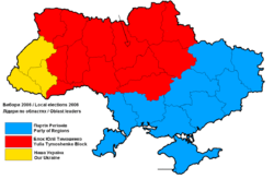 The 2006 Ukrainian local elections took place on March 26, 2006. The elections saw the southern and eastern regions of the country vote for the Party of Regions, while the west and central regions were won by the Our Ukraine Bloc and Yulia Tymoshenko Bloc, respectfully. They were followed by the 2010 local elections.