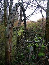 This was a collier's hamlet near the Maich Water. The Loch Riggs Colliery was abandoned in 1808 when the works were flooded. The rich coal seams ran under the loch and were never further exploited. In 1900 the old colliery waste was encountered by the navvies during the construction of the railway between Lochwinnoch and Kilbirnie. A nearby road was locally known as the 'Back-Stair-Heid' and it has been suggested that this refers to the location of a pit ladderway used to carry coal out of the mines before winding engines were in use.[18]