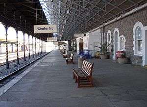 Kimberley railway station is the central railway station of the city of Kimberley, in the Northern Cape province of South Africa. Because Kimberley is the junction of the main Cape Town–Johannesburg main line with another line from Bloemfontein, it is served by several routes of the Shosholoza Meyl inter-city service.