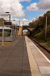 The Up (Kirkhill bound) platform is signalled for bi-directional running to enable Up trains to depart in the Down direction. In the past this has been used for trains from Langside to depart to Muirend on the Neilston Line. Nowadays trains only depart the 'wrong way' from this platform during times of disruption.