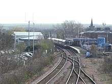 A proposal to bring two railway lines to the town had been suggested as far back as 1836, but neither plan succeeded. This led for pressure to support a new line from Burntisland to Newport-on-Tay and Tayport via Kinghorn, Kirkcaldy, Markinch and Cupar in 1840. However, it was three years before Parliament even acknowledged this essential plan. A unanimous decision was passed in favour by both the House of Lords and Commons.[3] Kirkcaldy railway station, along with now defunct stations in Sinclairtown and Dysart, finally opened on 20 June 1847[3][4] as part of the Edinburgh and Northern Railway, which terminated at Cupar. Train services were later taken over by the North British Railway, which was absorbed by the London and North Eastern Railway in 1923. The nationalised British Railways took over in 1948.
