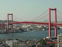 There are several bridges in Kitakyushu and between the city and other places. The largest ones are the Kanmonkyo Bridge linking Kitakyushu and Shimonoseki (on Kyushu and Honshū respectively) via the Kanmon Straits and the Wakato Bridge linking the wards of Tobata and Wakamatsu. There are smaller bridges over the Onga River on the western border of the city.