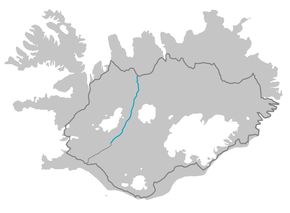 The road begins in the south of Iceland near Haukadalur and behind the Gullfoss waterfall, ending in the north near Blönduós. The road traverses the interior between two glaciers, Langjökull and Hofsjökull. It is the second longest of the roads through the Highlands of Iceland. It takes about 5 hours to traverse by car.