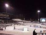 The top of the Kodak Tower, August 2008- Kodak Tower from Frontier Field during an outdoor hockey game.