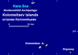 The Kolomeytsev Islands (Russian: острова́ Коломе́йцева, ostrova Kolomeytseva) is a group of two small islands, part of the Nordenskjold Archipelago in the Kara Sea coastal region, off the coast of Siberia. These two islands are located at the northwestern end of the archipelago.