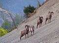 Animals in this national park include elk, badger, cougar, marten, white-tailed deer, mountain goat, Canada lynx, marmots, moose, Grizzly bear, coyote, timber wolf, black bear, wolverine, mule deer, golden-mantled ground squirrel, and Bighorn sheep.