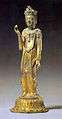 Standing Bodhisattva with triple head ornament, probably Goguryeo, mid-6th century. Gilt bronze, h. 15 cm. National Museum of Korea, Treasure No. 333.