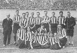 Two Dutch teams of 12 players played a match against each other at 6 August 1928. One team wore red-white shirts and the other team played in red-black shirts. The referee was H. W. Vliegen, LL. B. and the Assistant referees (linesmen) were G. Leeuw and W.C. Schaap, C.E..
